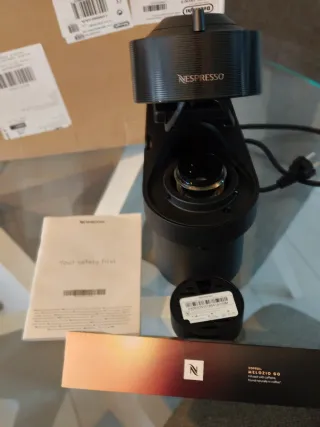 Cafetera Nespresso Vertuo Pop en color negro. Usada solo dos días, prácticamente nueva. - Diseño compacto y moderno. - Compatible con cápsulas Vertuo. - Incluye el soporte para taza.