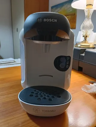 Cafetera de cápsulas Tassimo de la marca Bosch. Ideal para preparar tu café favorito. - Diseño compacto y moderno. - Fácil de usar y limpiar.