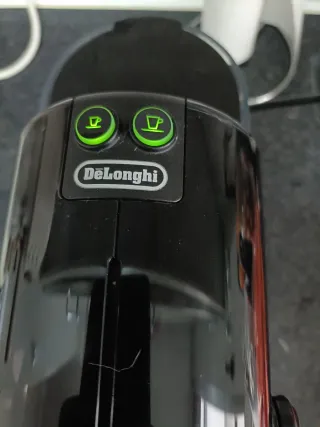 Cafetera de cápsulas DeLonghi en color negro. - Diseño compacto y moderno. - Dos botones para la preparación del café. En perfecto estado , tiene 5 meses.