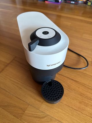 Cafetera Nespresso Vertuo en color blanco y negro. Diseñada para preparar café de forma rápida y sencilla. Comprada en diciembre de 2024. - Diseño moderno. - Incluye accesorio para cápsulas.