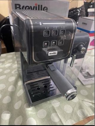 Cafetera espresso Breville Barista Max+ en color negro. - Incluye molinillo integrado. - Panel de control digital. - Vaporizador de leche. - Bandeja de goteo extraíble. Prácticamente nueva, con Tamper de madera nuevo.