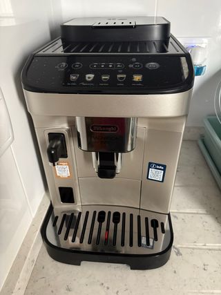 Cafetera superautomática De'Longhi Magnifica en color negro brillante. Diseñada para preparar una variedad de bebidas de café. Tiene un año de uso, con factura y garantía. Y se envía con caja Está en perfecto estado. La vendo porque nos han regalado otra. - Panel de control táctil con iconos. - café recién molida - Función Latte Crema - Depósito de leche extraíble. - Bandeja de goteo. - Función de limpieza. Programas Café espresso, cappuccino, latte machiatto. Agua caliente. Posibilidad de seleccionar la función "x2", para un Espresso doble