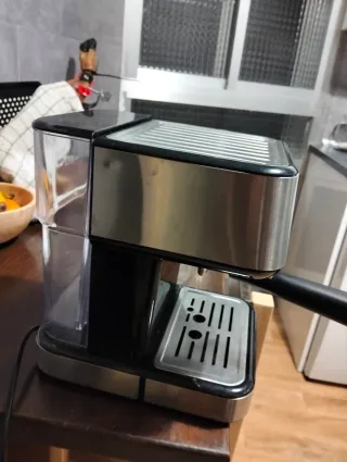 Cafetera espresso de la marca Create, con un diseño moderno y funcional. - Acabado en acero inoxidable y negro. - Depósito de agua extraíble. - Bandeja de goteo. - Panel de control con dial.