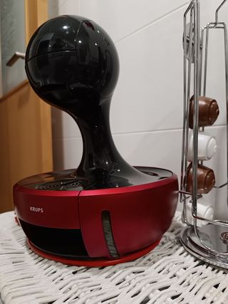 cafetera (modelo drups) + porta cápsulas incluida original automática se para sola,bebida fría y caliente color rojo y negro en perfecto estado
