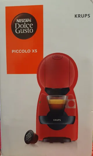 Cafetera Nescafé Dolce Gusto Piccolo de Krups en color rojo. Ideal para preparar deliciosas bebidas. - Diseño compacto y moderno. - Fácil de usar y limpiar. - Incluye manual de instrucciones. Se vende a ese precio porque se regala otra de repuesto.