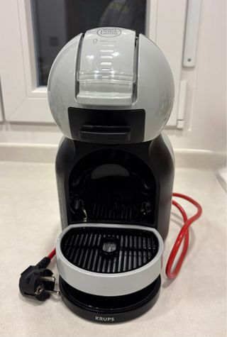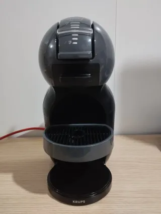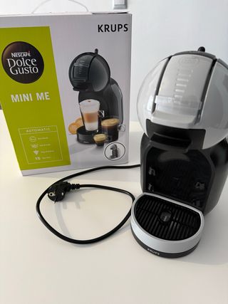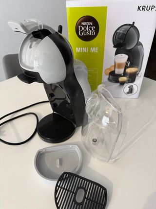 Cafetera Krups Dolce Gusto en color gris. Krups Mini me Bebida fría o caliente Depósito de agua transparente. Bandeja recogegotas ajustable. Limpita y descalcificada Café calentito y con muy buen sabor. En muy buen estado Funciona perfectamente
