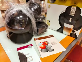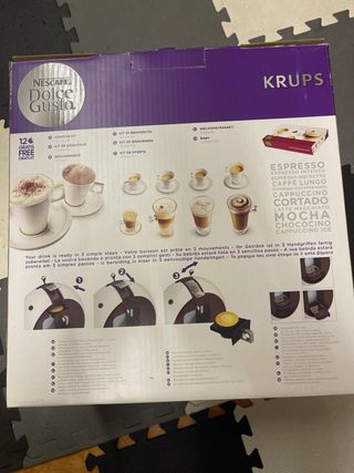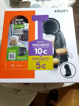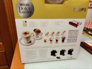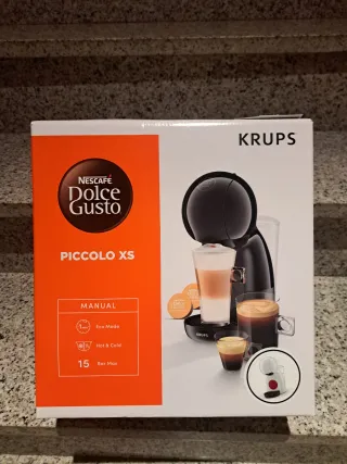 Cafetera Dolce Gusto de la marca Krups. Permite preparar bebidas calientes y frías. - Modelo manual. - Capacidad para 15 tazas. - Diseño compacto y moderno. - Incluye 33% de material reciclado. - Modo Eco-Mode. Algo negociable