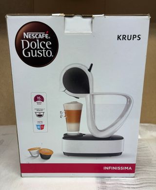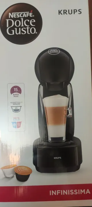 Cafetera de cápsulas Krups Dolce Gusto modelo Infinissima. - Diseño moderno en color blanco y negro. - Presión de 15 bares. - Permite preparar bebidas frías y calientes. - Cápsulas herméticamente selladas.