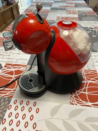 Cafetera de cápsulas Dolce Gusto de la marca Krups. Diseño moderno en color rojo y negro. - Bandeja recogegotas. - Depósito de agua. - Botón de encendido. En perfecto estado la vendo por falta de uso.