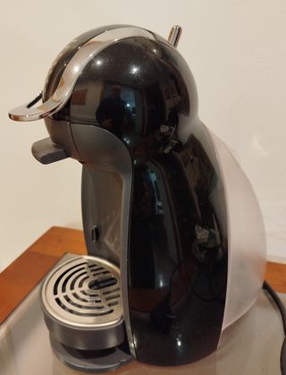 Cafetera negra y gris para cápsulas Nescafé Dolce Gusto “Mini Me” con sistema de alta presión y sistema thermoblock. Diseño compacto con bandeja regulable a 2 alturas para diferentes tipos de bebidas y tamaños de tazas o vasos. Dimensiones: 16 x 30,5 x 24 cm aprox. Capacidad de 0,8L. Usada pero en muy buenas condiciones. No incluye la caja. Precio negociable.