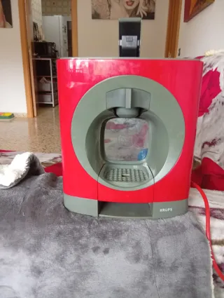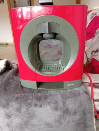 Cafetera de cápsulas Krups en color rojo.esta utilizada, pero funciona bien,de hecho está mañana me he hecho un cortado,lleva cápsulas de dolce gusto, el único problema que tiene es que la goma de estanqueidad del depósito de agua, tiene una fisura y perdía agua,he desmontado la pieza,y sería comprar una junta de goma nueva colocarla y cafetera nueva, la maneta que se puede ver en el anuncio, está un poco rajada, pero no interfiere en el funcionamiento, por esos defectos, pido ése precio, para quien sea un poco manitas - Diseño moderno y compacto. - Bandeja de goteo extraíble. - Indicador de encendido.