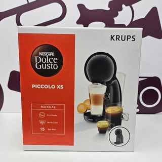 Cafetera de cápsulas Krups Dolce Gusto Piccolo XS en color negro. Compacta y fácil de usar. - Diseño moderno y elegante. - Ideal para preparar café y otras bebidas. - Marca: Krups. - Modelo: Dolce Gusto Piccolo XS.