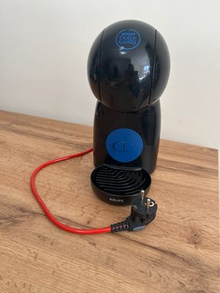 Cafetera Dolce Gusto de la marca Krups en color negro. Ideal para preparar tu café favorito. De vez en cuando el agua no sale caliente. Problemas de cal y limpieza, por eso el precio - Diseño compacto. - Fácil de usar.