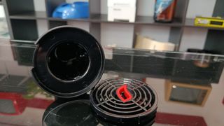 Receptáculo de cápsulas, cubo para desecharlas, y cápsula transparente para limpiar la cafetera.