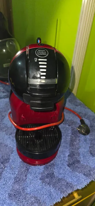 Cafetera Dolce Gusto de color rojo, en buen estado. - No funciona bien. Se sale el agua. - Incluye una taza de cristal.