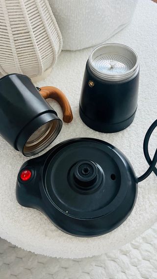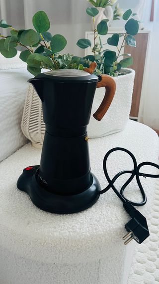 Cafetera italiana eléctrica de aluminio. - La ultima foto, piezas de regalo - Diseño clásico de moka. - Base eléctrica para calentar. - Asa lateral para un agarre seguro.