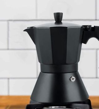 Cafetera italiana Jocca de color negro, con un diseño moderno y elegante. Perfecta para preparar un delicioso café. - Cuerpo de aluminio. - Asa y pomo de madera. - Base giratoria 360º.