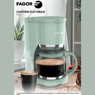 Cafetera de goteo Fagor en color verde, con filtro reutilizable.capacidad para 4 o 6 tazas en cada uso. - Filtro permanente reutilizable. - Jarra de cristal.Apta para lavavajillas.