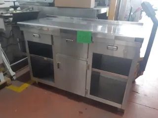 Mueble de acero inoxidable con diseño industrial, ideal para hostelería o negocios. - Superficie de trabajo amplia. - Cajones y compartimentos de almacenamiento. - Estructura robusta y duradera. Compra y venta de todo los muebles de Hosteleria restaurante bar obrador, carnicería, pastelería, supermercados ,de todas las marcas infrico ,coreco, docriluc,Nevera ,vitrina expositora ,congelador de 4 caras, cafetera ,molinillo ,botellero, cocinas, plancha ,freidora, sillas mesas, máquina de hielo, amasadora batidora,mesas de trabajo acero inoxidable,freidoras de gas ,freidora eléctrica, Consulta sin compromiso 677572927