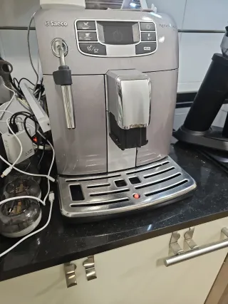 Cafetera automática Saeco Intelia de color gris. Diseñada para preparar deliciosos cafés expressos. - Vaporizador para leche. - Bandeja de goteo extraíble. - Depósito de agua. - Molinillo integrado con ajuste de molienda. Funciona perfectamente, vendemos por falta de uso. Delonghi Sage Krups