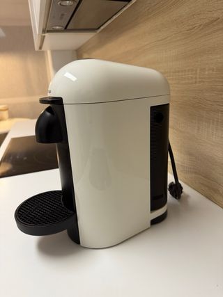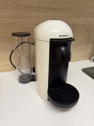 se vende Máquina de café Nespresso Vertuo Plus de Krups, blanca en perfecto estado, por cambio a cafetera superautomatica. Deposito de agua que se gira para mejorar el espacio en la cocina. Hace un buenisimo cafe cremoso, nada que ver con otras nespressos - Tecnología de centrifugación. - Permite preparar diferentes tamaños de café: 40 ml, 80 ml, 100 ml, 230 ml y 414 ml por lectura código de barras en la cápsula. - Depósito de agua de 1,2 litros. - Color blanco. - Automática. Apertura y cierre automatico a un toque.