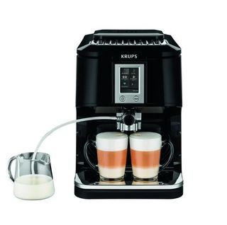 Cafetera Krups superautomática en color negro. - Diseño moderno y compacto. - Panel de control digital. - Vaporizador para leche.