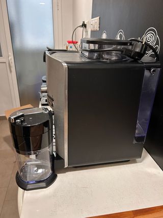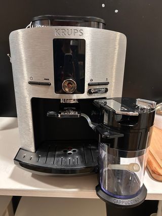 Cafetera superautomática Krups Quattro Force. Muele, compacta y prepara café desde un grano fresco. El estado es funcional y no me dio fallos, cambiamos de cafetera en busca de una con sistema automático para un café más denso