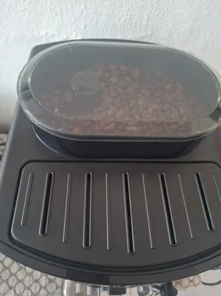 Cafetera espresso Krups plateada y negra. Prepárate cafés de bar sin salir de casa, impregna tu hogar con el olor del café recién molido. - Panel de control con botones y dial. - Indicador de presión. - Bandeja de goteo extraíble. - Molienda ajustable - Varios portafiltros 3 meses de uso