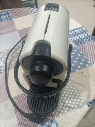 Cafetera Nespresso Krups de color blanco, pequeña. - Diseño compacto y elegante. - Marca: Krups. - Estado correcto, funcionando bien, descalcificación recien realizada.