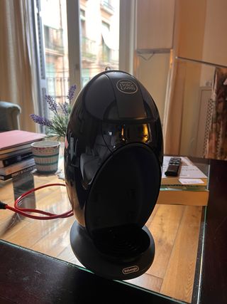Cafetera Nescafé Dolce Gusto de DeLonghi en perfecto estado. Es negra y tiene un diseño elegante. - Modelo DeLonghi. - Máquina de café monodosis. - Funciona con cápsulas Dolce Gusto.