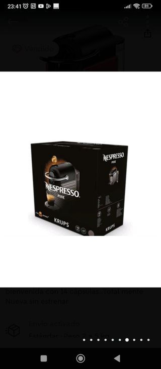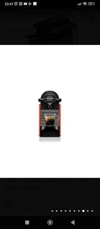 Cafetera monodosis DeLonghi Dolce Gusto Piccolo XS. Color negro y rojo. En perfecto funcionamiento ( como se ve en la foto )y muy cuidada. Es pequeña y decorativa. El café sale rico y en segundos. También con el agua caliente puedes hacer chocolate y té. Todo muy rápido. Importante: hay cápsulas de marcas blancas compatibles. Es una pequeña joya si aprecias el café y quieres que además la cafetera ocupe mínimo espacio en la cocina.