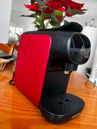 Cafetera L'OR BARISTA en color rojo y negro, diseñada para cápsulas (compatibles con todas las cápsulas nespresso). Funciona perfectamente, sin ningún tipo de problema y muy bien cuidada. Precio NO negociable. Se entrega en mano en Torrero.