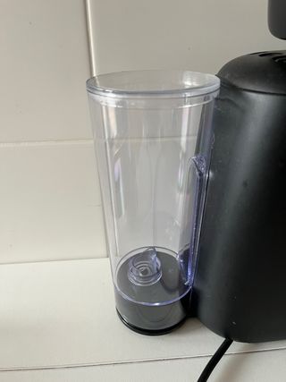 la cafetera es usada poco funciona perfectamente y vaso está bien es de nespresso y espumador de leche por barista está nuevo a estrenar