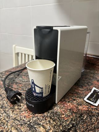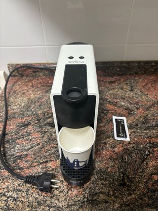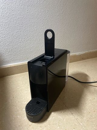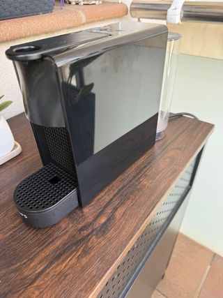 Cafetera Nespresso Essenza Mini de Krups, compacta y en buen estado. Funciona perfectamente. El depósito de agua tiene una pequeña grieta por una caída, pero no pierde agua (probado). Ideal para disfrutar espresso rápido y de calidad en casa