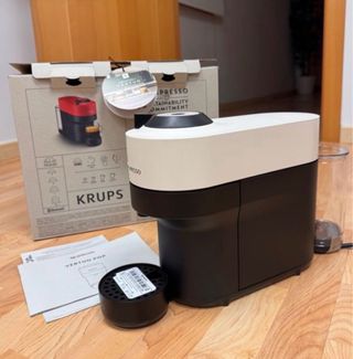Cafetera Nespresso Vertuo Pop de la marca Krups en blanca. Ha sido usada varias veces pero se encuentra en buen estado. Cualquier consulta que tenga no dude en preguntar.