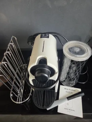 Vendo cafetera Nespresso de la marca Krups, muy bien cuidada y poco uso. Funciona perfectamente y ocupa muy poco espacio en la cocina. - Limpieza profunda: Recién descalcificada y depósitos higienizados. - Sistema de cápsulas: Compatible con Nespresso y marcas blancas. - Vaporizador integrado: Brazo para calentar leche y crear espuma. - Rápida y eficiente: Calentamiento en 25 segundos y auto-apagado. - Diseño compacto: Ideal para espacios pequeños sin renunciar a presión. La vendo por falta de uso. Perfecta para quien quiera un café rápido, de calidad y una máquina impecable.