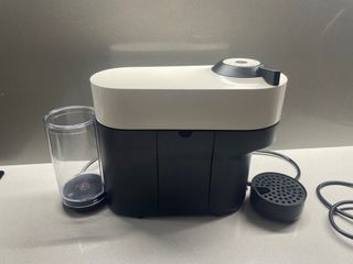Cafetera Nespresso Vertuo en color blanco y negro. - Incluye manuales de Nespresso Vertuo Pop y Vertuo Plus. - Incluye un accesorio Krups.