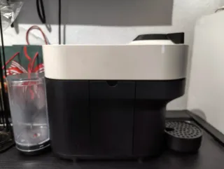 Cafetera Nespresso Vertuo Krups en color blanco y negro. Incluye un cajón organizador para cápsulas, en el que caben 50 cápsulas - Diseño moderno. - Cajón con divisiones para cápsulas - Uso de un año aproximadamente, muy bien cuidada - Funciona correctamente
