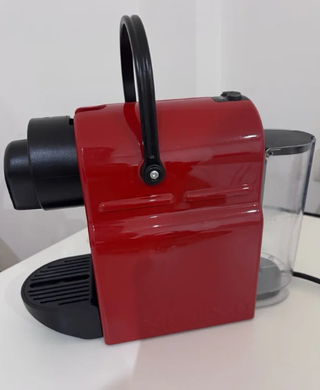 Cafetera Nespresso Krups Inissia de color rojo.( En perfecto estado, funciona muy bien y puede durar años). - Diseño compacto y moderno. - Pequeña y manejable ,cabe en cualquier rincón de la cocina. - Hace muy buen café con crema. - Dos botones: Uno para café largo y otro para café corto. - Depósito de agua extraíble de 0.8 L. - Bandeja recogegotas abatible. - Calentamiento en 25 S. - Apagado automático - Depósito para almacenar hasta 10 cápsulas usada. - 19 Bar. - 2.4 kg.