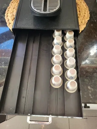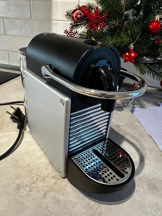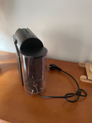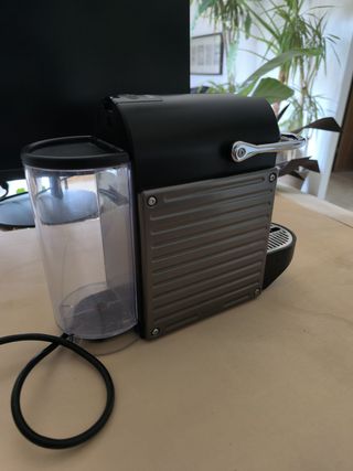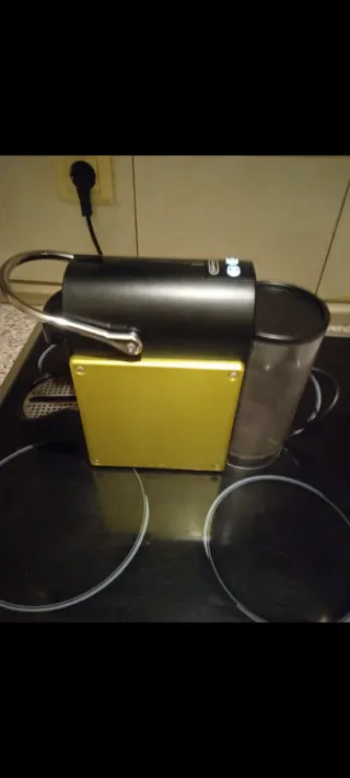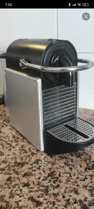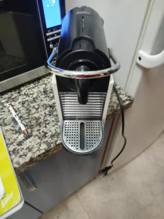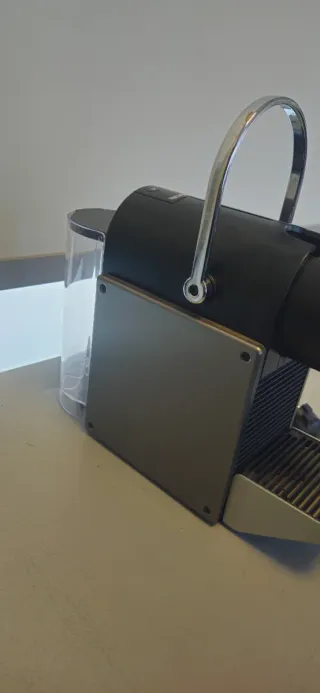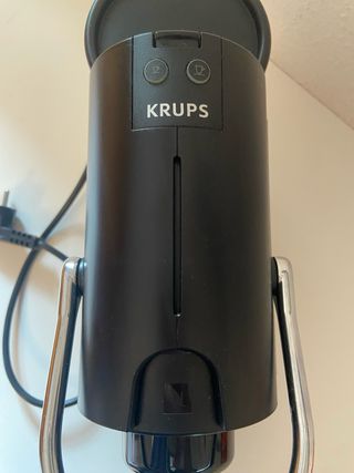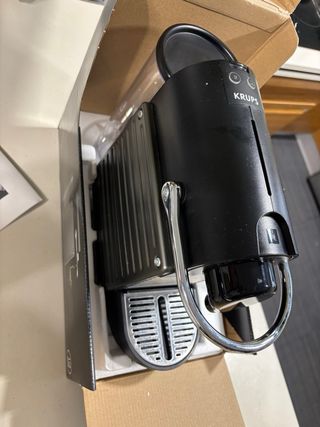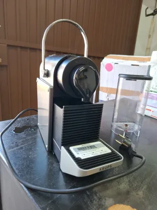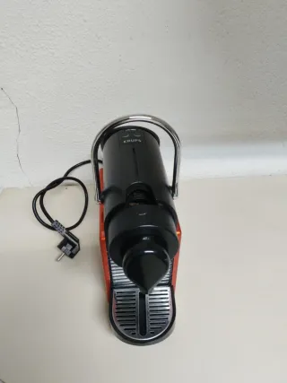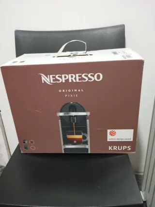 Cafetera Krups Nespresso Pixie, compacta y robusta. Funciona perfectamente, café rápido y con buena presión. ✅ Encendido automático ✅ Compatible con cápsulas Nespresso ✅ Muy poco uso ⚠️ Le falta la tapa del depósito de agua (no afecta al funcionamiento) se encuentra el recambio por menos de 10 euros (depósito completo) sin problemas.