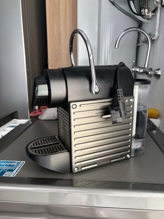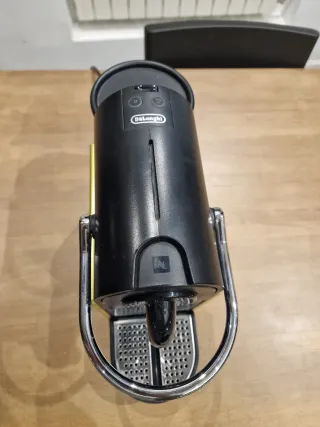 Cafetera Nespresso con detalles metálicos como nueva. - Diseño moderno y compacto. - Acabado en color negro y plateado. - Unico modelo de nespresso que te avisa con luminosos rojos de que el tanque está vacío.