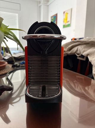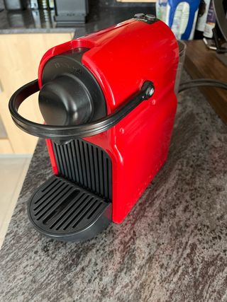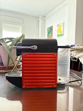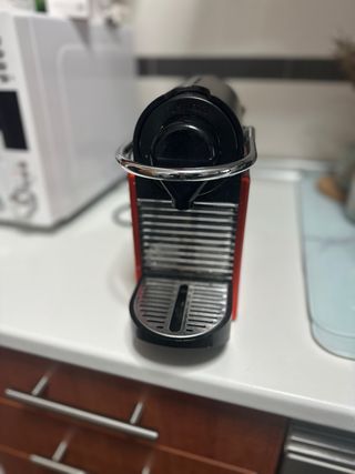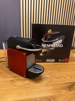 Cafetera Nespresso de cápsulas modelo Pixie en color rojo. - Diseño compacto y moderno. - Acabado brillante. - Funciona perfectamente. - Se encuentra en buen estado.