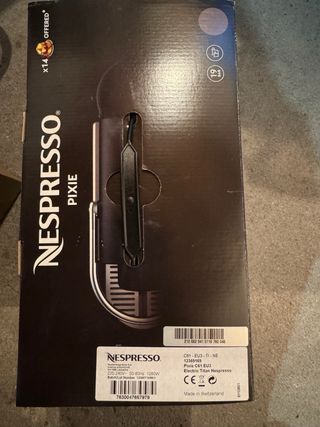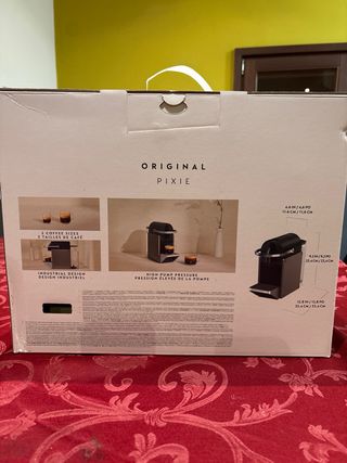 Nespresso Pixie en muy buen estado. (1 año)Funciona perfectamente, calienta rápido y usa cápsulas Nespresso y compatibles. Depósito limpio, poco uso y bien cuidada. Compacta y resistente, ideal para casa u oficina. Se entrega con cable original.