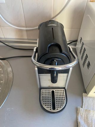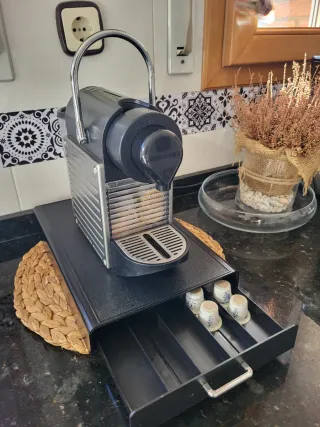 Nespresso Pixie De’Longhi – 55 € Cafetera Nespresso Pixie en muy buen estado. Funciona sin problemas, calienta rápido y ocupa poco espacio. Perfecta si quieres algo fiable sin pagar el precio de una nueva. Incluye soporte metálico para organizar cápsulas, de regalo. Entrega en mano en la zona que te venga bien. Precio ya ajustado.