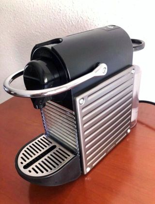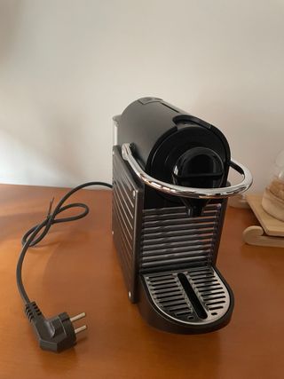 Cafetera de cápsulas Nespresso Pixie en color negro. Se encuentra en buen estado. - Diseño compacto y moderno. - Palanca cromada. - Bandeja recogegotas extraíble.