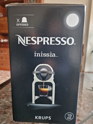 Cafetera Nespresso Inissia de Krups en color blanco. Compacta y fácil de usar para preparar tu café favorito. - Modelo: Inissia - Marca: Krups - Color: Blanco - Presión: 19 bar Cafetera Nespresso Inissia de Krups totalmente nueva! A estrenar!! Se puede probar antes de llevársela. BOMBA DE PRESIÓN DE 19 BARES: Asegura una extracción óptima del aroma y sabor del café, logrando resultados profesionales con crema densa e intensidad equilibrada. - Diseño compacto y moderno. - Presión de 19 bares para un café perfecto. FUNCIÓN DE AUTOAPAGADO TRAS 9 MINUTOS DE INACTIVIDAD: Ahorra energía y mejora la seguridad, apagándose automáticamente.