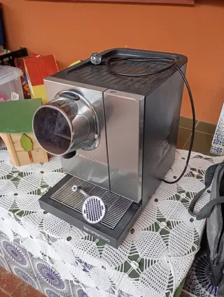 Si te interesa te paso mi teléfono y te paso vídeo de la cafetera funcionando. Es de cápsulas planas. Cafetera Nespresso de diseño profesional, ideal para disfrutar de un café de calidad en casa. Su acabado plateado y negro le da un toque elegante. - Diseño moderno y compacto. - Depósito de agua extraíble.