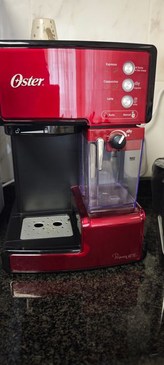 Cafetera Oster Prima Latte en color rojo. Muy poco uso. Está impecable - Diseño moderno y compacto. - Panel de control con opciones para Espresso, Cappuccino y Latte. - Depósito de agua extraíble.
