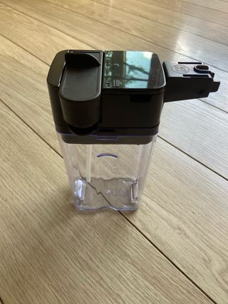 Se vende el depósito de agua de la cafetera Saeco Via Veneto Combi de Luxe. Lo vendo porque tiene una grieta en la parte superior como se ve en las imágenes, por lo que se tiene que rellenar de agua hasta llegar a la altura de la grieta, sino te va a perder agua por la grieta. El código de producto de Saeco es 222690781 - Material: Plástico. - Color: Transparente ahumado. - Diseño: Rectangular con asa. - Presenta una grieta en la parte superior.
