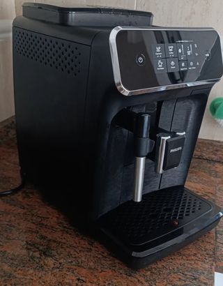 Cafetera super automática Philips en color negro. Permite preparar diferentes tipos de café y agua caliente. - Panel de control táctil. - Dispensador de café ajustable. - Depósito de agua extraíble. - Bandeja de goteo extraíble. -Se puede usar café en grano o molido. -Con espumador de leche. -Agua caliente para infusiones. -Grupo interno compatible con la marca saeco. -Usado pero muy bien conservado y funciona perfecto sin ningún tipo de fallo. -Nueva vale entre 278 y 300 más gastos de envío. -Mas preguntas al tlf 630840154.